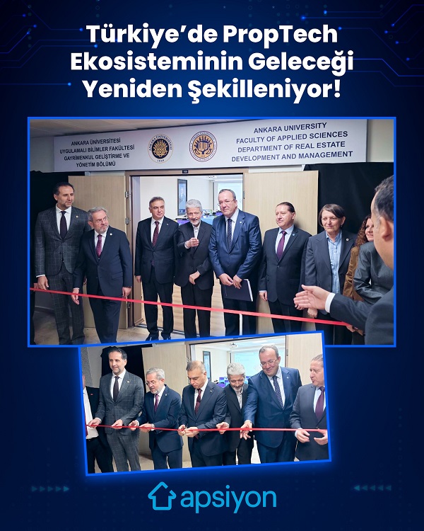 Türkiyenin PropTech yolculuğu, sektörler arası birliğiyle Ankarada taçlandırıldı. Apsiyonun katkılarıyla Ankara Üniversitesinde Türkiyenin ilk gayrimenkul teknolojileri merkezi olan PropTech Hub açıldı. Açılış vesilesiyle Ankarada düzenlenen çalıştay, kamu kurumları, özel sektör temsilcileri, akademisyenler ve sivil toplum kuruluşlarını bir araya getirdi.
