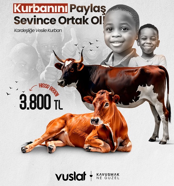 “Kardeşliğe Vesile Kurban” çağrısı ile vacip kurban çalışmalarına başlayan Vuslat, her yıl olduğu gibi bu Kurban Bayramı’nda da bağışçılarından vekâlet alarak yurt içinde ve yurt dışında kurban organizasyonu çalışmalarına başladığını duyurdu. Dernek, Afrika ve Asya kıtasındaki kurban çalışmalarıyla birlikte ülkemiz ve Gazze’de de kurban faaliyeti düzenleyeceğini açıkladı. Yapılan açıklamada, kurban hisse bedelinin Afrika ve…